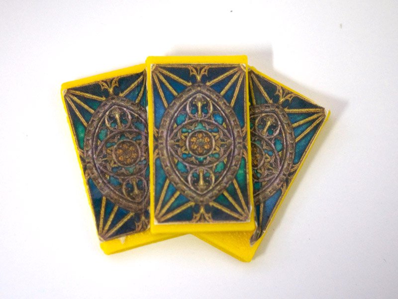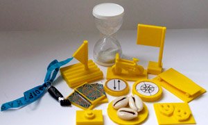 As fichas de desafios complementam o tabuleiro, cada ficha indica uma categoria de item que está ligado que a um desafio específico.