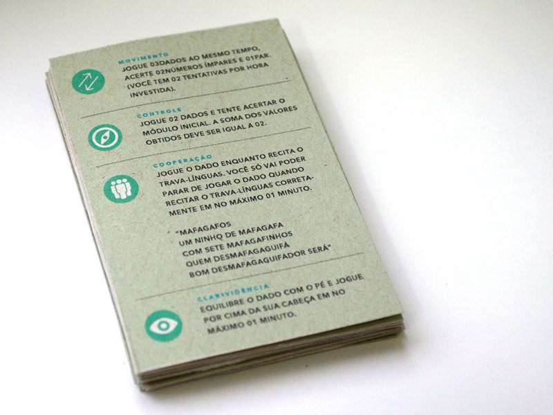 Os módulos e cartas foram impressos em papel reciclado tamanho A4 gramatura 180g.