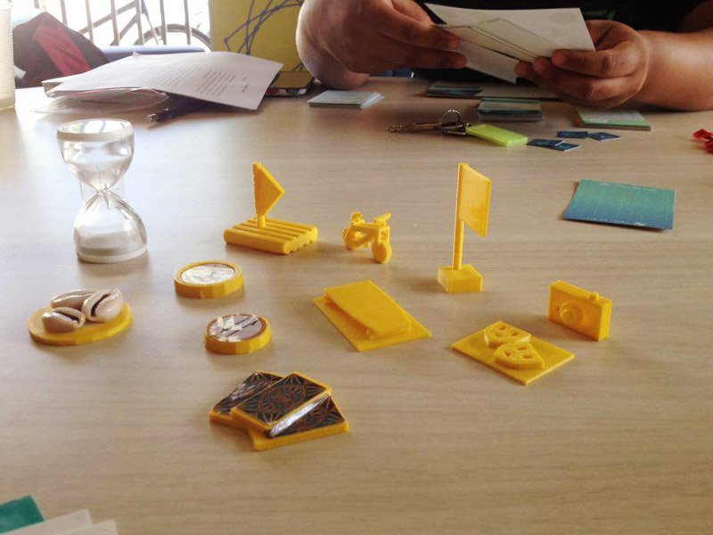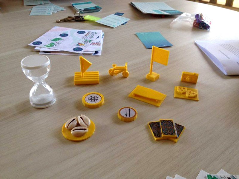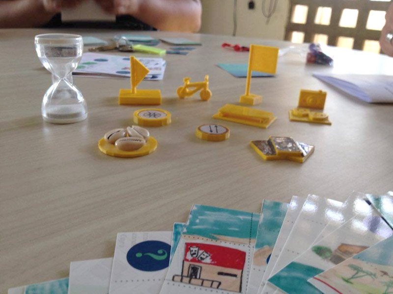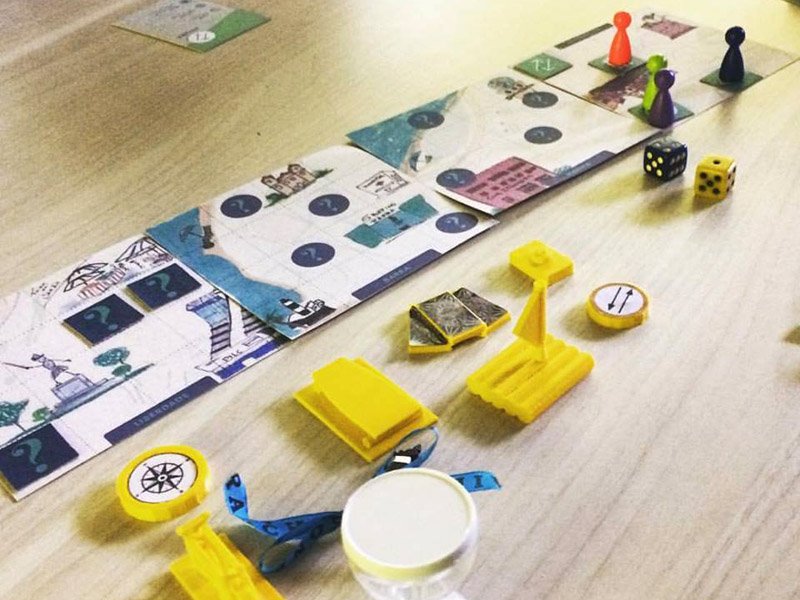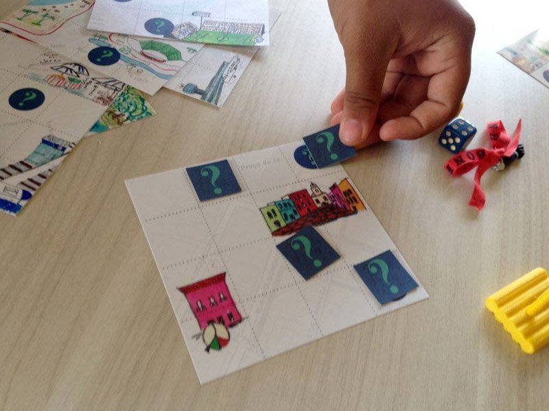 Primeiramente, os colaboradores foram convidados a fazer um brainstorm, pensar sobre sua cidade e decidir quais as partes da cidade eram importantes para estar no jogo. Mais tarde, realizamos saídas de campo a estes lugares para recolher materiais / experiências. As trilhas de GPS destas saídas nos ajudaram a criar o mapa do tabuleiro do jogo. Os participantes do projeto fotografaram/desenharam objetos que encontrarem nestes percursos e tornaram-se parte do tabuleiro do jogo. Posteriormente, os objetos escolhidos como peças foram modelados e impressos em uma impressora 3D. Para tal trabalho, tivemos parceria com o IHACLab-i usando a impressora 3D e o espaço do laboratório.