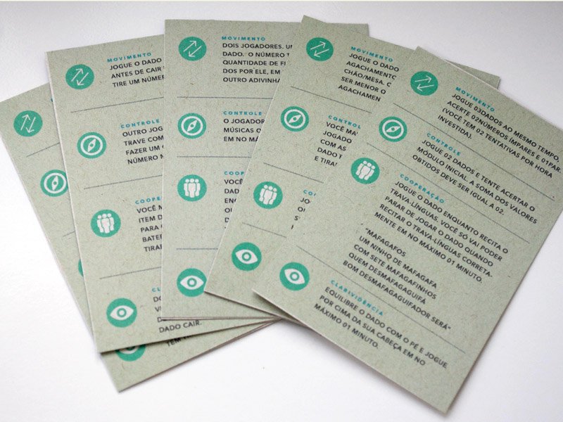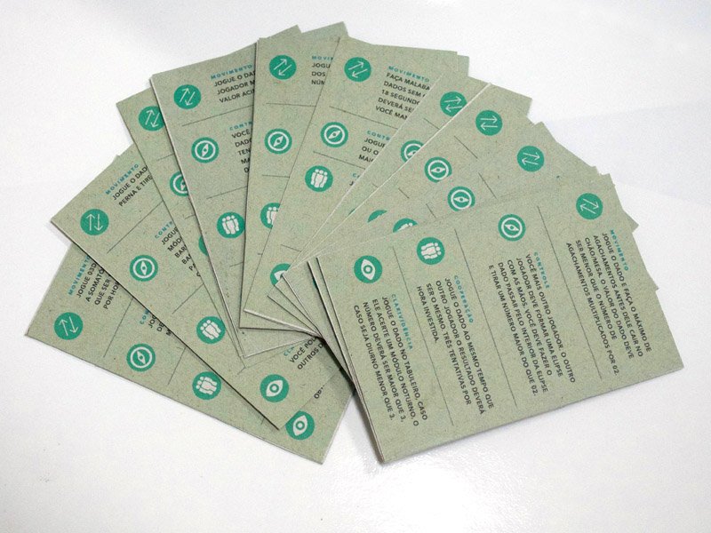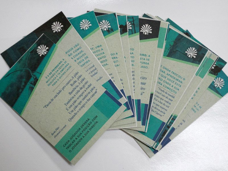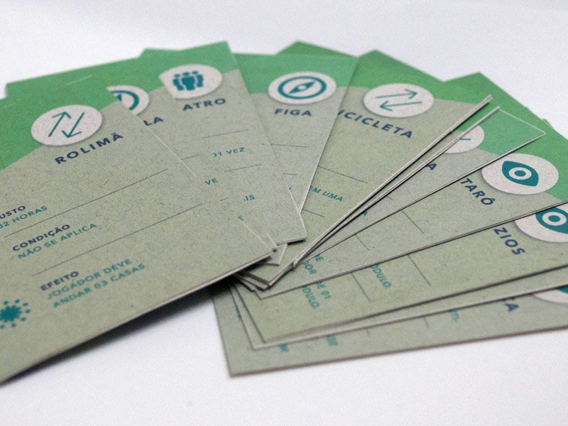 Os módulos e cartas foram impressos em papel reciclado tamanho A4 gramatura 180g.